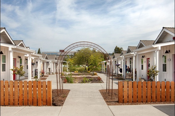 Carol: Well, like the man said at the top of our show, David’s, they are less than 250 square feet. It’s the size really of a small hotel room. It’s very compact, but it’s home. And what makes it even better is that this is permanent housing for veterans. It’s not transitional housing or a homeless shelter, but an honest to goodness standalone tiny house that even has a porch. They’re located in Santa Rosa, which is in Sonoma County, California. Shirlee Zane is one of the people who spearheaded the tiny houses. She’s the former supervisor for Sonoma County, and her dad was a World War two veteran. And he’s one of the two people the tiny houses are named after. So here’s how she describes the tiny houses.